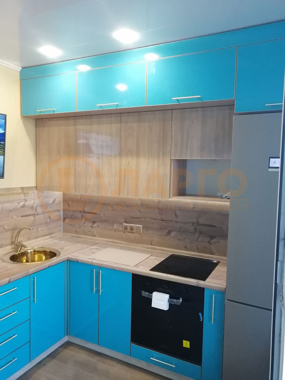 Фурнитура с доводчиками, удобная угловая планировка и встроенная техника обеспечивают комфортное использование.