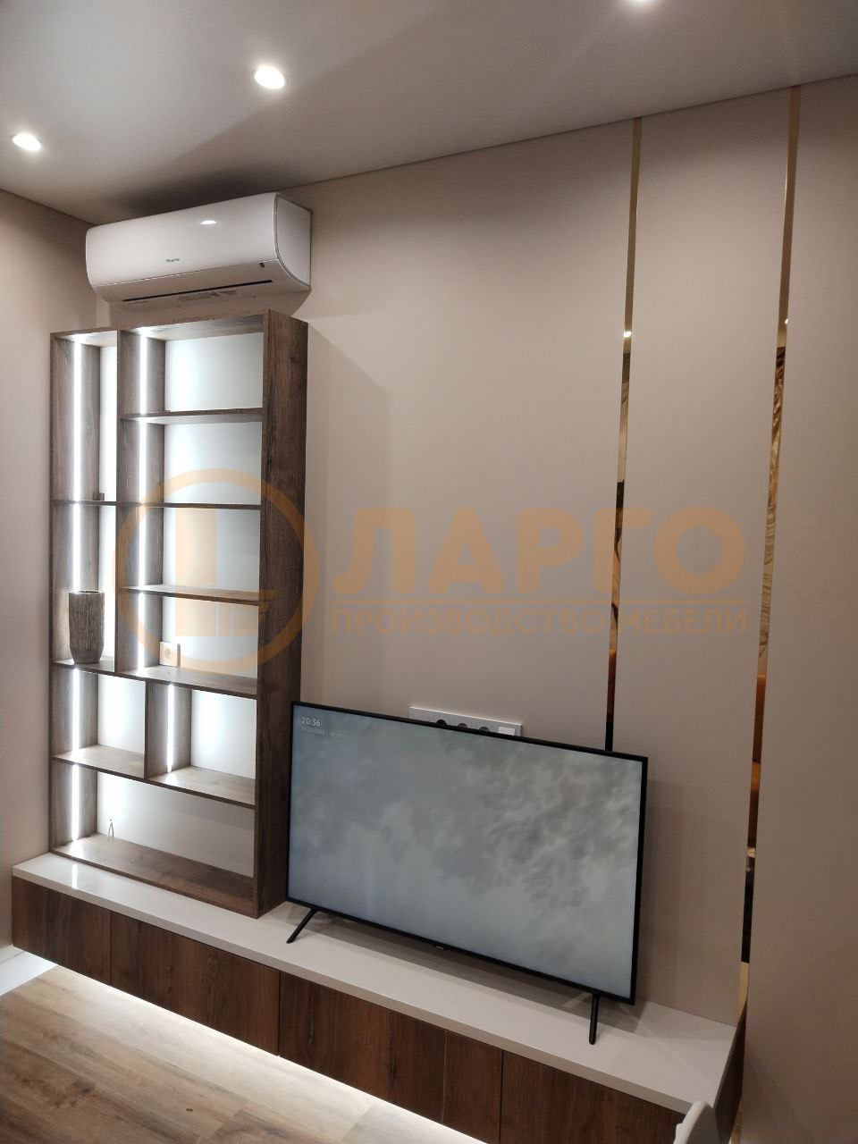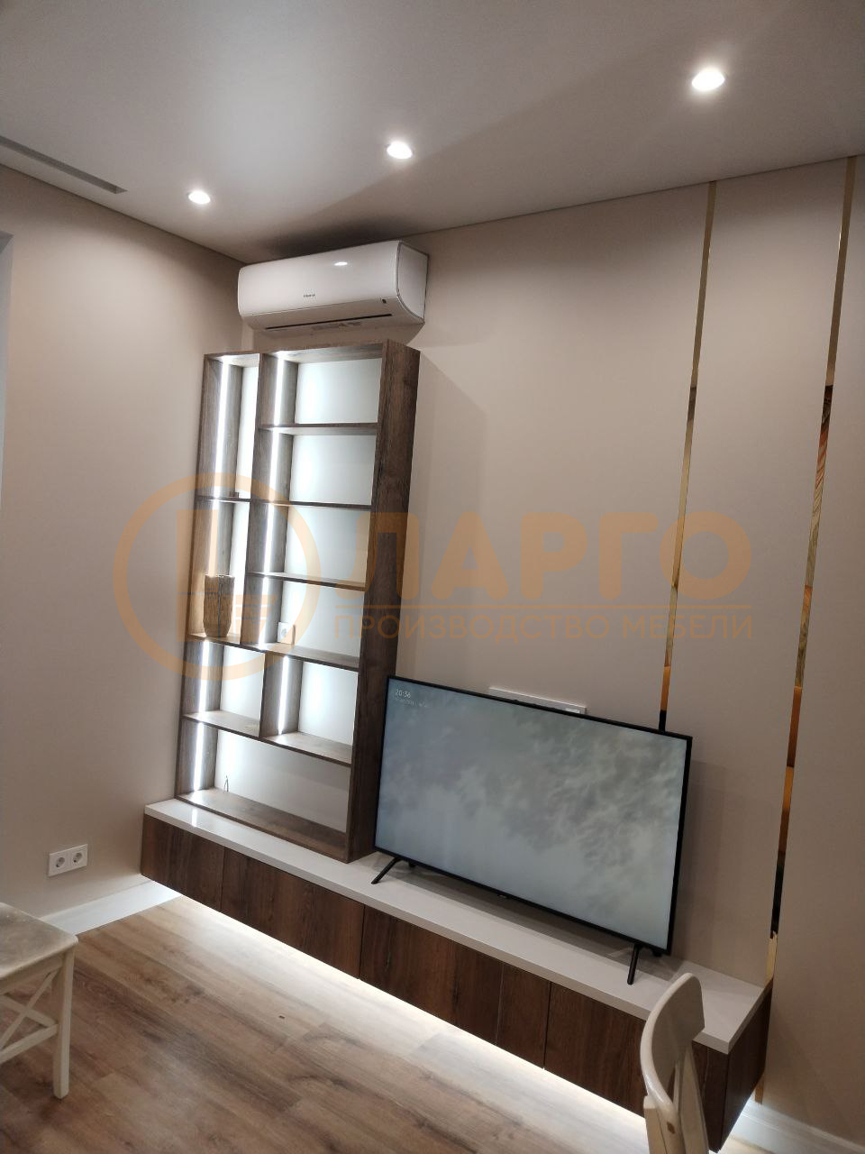 Ниша под ТВ: специально разработанная ниша позволит идеально разместить ваш телевизор, создавая элегантный и функциональный центр в вашей гостиной.