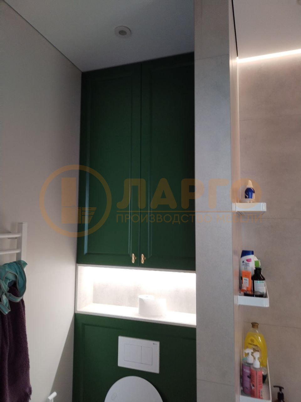 Превратите вашу ванную комнату в уникальное пространство с нашим индивидуально заказанным сантехническим шкафом в зеленом цвете. Свяжитесь с нами сегодня, чтобы начать создание вашего персонального дизайна ванны. С Мебельной компанией Ларго, каждый момент в ванной становится приятным переживанием стиля и комфорта.